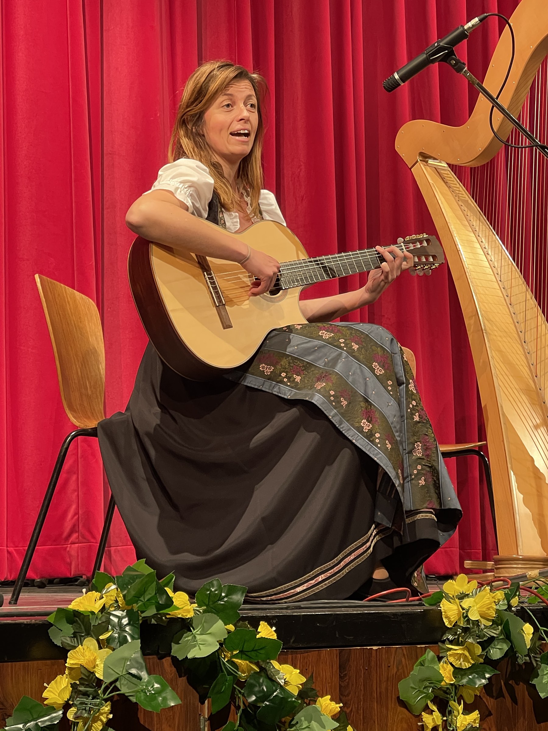Traditionell begann der 1. Teil mit dem „Floridsdorfer Spatzen Marsch“ von Karl Schreier. Romantisch ging es mit dem Walzer „Rosen aus dem Süden“ von Johann Strauss weiter. Gefühlvoll vom Orchester vorgetragen. Die Zuhörer waren begeistert. Danach ertönte wieder Marschmusik mit „Oh, du mein Österreich“ von Franz von Suppé, die zu einer heimlichen Hymne Österreichs wurde. Dementsprechend lange gab es Applaus für´s Orchester. Nun überließen die Floridsdorfer Spatzen die Bühne der Hausmusi Reitbauer. Mit dem „ZellerseerWalzer“ von Florian Michlbauer und mit „Pepperl Boarischer“, einer Volksweise, begeisterte sie das Publikum. Anschließend brachten der Gesangsverein der Steirer in Wien und die Harfenistin Stefanie Bramböck einige Stücke zu Gehör. „Diandal, was denkst da denn“, ein Lied aus Oberösterreich, „I hab di gern“, ein Volkslied aus Kärnten, „Marijana“, ein Slawisches Liebeslied und „A zirbanes Bettal“ ein Volkslied aus Niederösterreich. Die Darbietungen wurden mit viel Applaus belohnt. Danach ging es in die Pause.