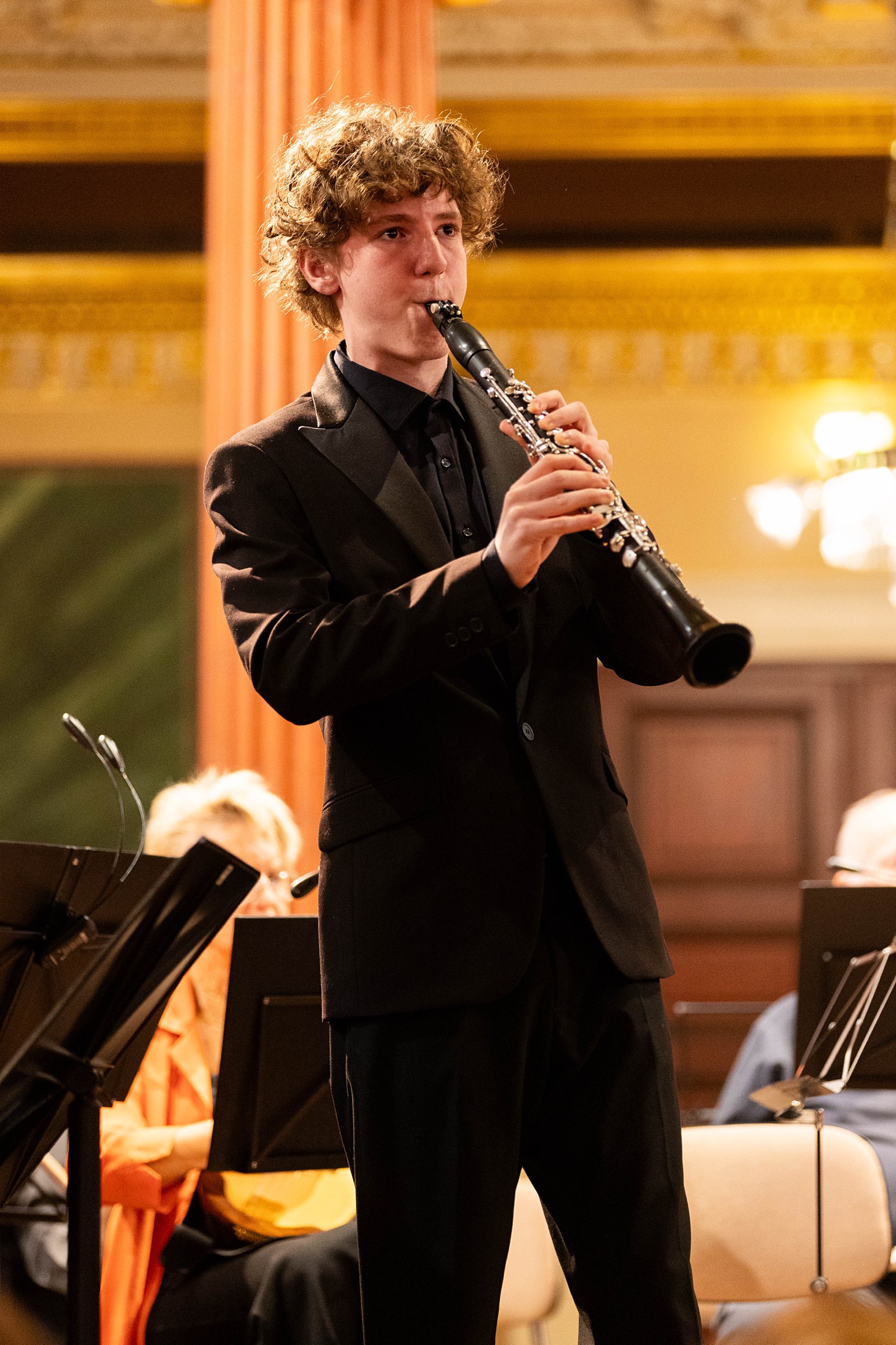 Im ersten Teil präsentierte das Floridsdorfer Spatzen Orchester unter ihrem Dirigenten Kerem Sezen eine abwechslungsreiche Auswahl an Stücken, die das Publikum auf eine musikalische Reise durch verschiedene Stilrichtungen mitnahm. Es begann mit „Armonie alpine“, einer Fantasie von Giacomo Sartori. Weiter ging es mit der Ouvertüre zu „Fra Diavolo“ aus der gleichnamigen Oper von Daniel Francois Auber. Das Intermezzo „Auf einem persischen Markt“ von Albert William Ketelbey entführte musikalisch in den Orient. Einen besonderen Akzent setzte die Darbietung von „Sholem Alekhem, Rov Feidman!“ mit Adam Benold, einem jungen Klarinettenvirtuosen.
