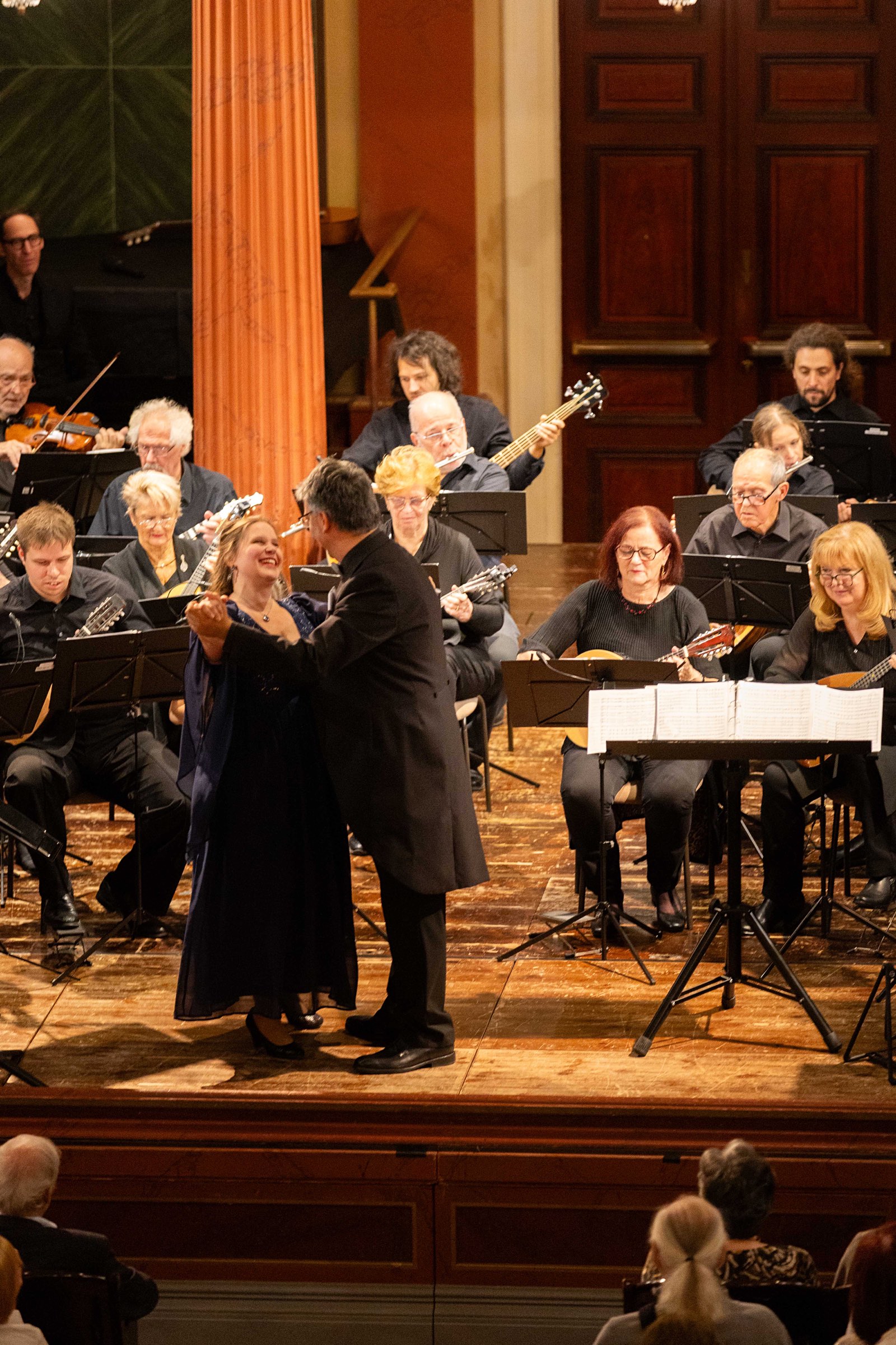 Ein besonderer Höhepunkt war das „Concerto in Sol Maggiore“ von Antonio Vivaldi, das von der Solistin Nataliya Striku und dem Solisten Raphael Handschuh mit großer Virtuosität und Ausdruckskraft interpretiert wurde. Ihre musikalische Präsenz verlieh dem Werk besondere Strahlkraft und begeisterte das Publikum. Mit „Liebe, du Himmel auf Erden“ aus der Feder von Franz Lehar folgte ein weiteres Highlight. Die Sopranistin Anita Götz verstand es, dem gefühlvollen Stück mit ihrer Stimme berührende Tiefe und Glanz zu verleihen. Ihr Auftritt wurde mit großem Applaus bedacht. Auch die „Pro Dedecka, Mazurka“ von Karel Valdauf bereicherte das Programm um eine tänzerisch-beschwingte Note und sorgte für weitere musikalische Farbtupfer im Konzertverlauf.